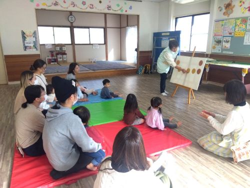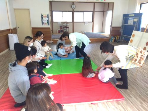 今日は、くれよん保育室の1歳児のおともだちと一緒に、パネルシアターや絵本を楽しみました♥お互いはじめまして(^_-)-☆いつもの児童館もなんだか雰囲気が違ってドキドキしたかな?「たのしいきょうしつ」は不定期開催です。詳細は保育室のホームページをご覧になってくださいね~。
