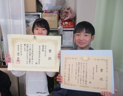 くれよん塾の書道の11月、12月締め切りの検定で3人のお友達が入選しました!