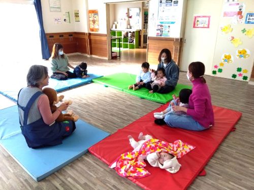 古松台児童館で10:30~くれよん保育室のメンバーが出向いて、「出張わらべうたあそび」をおひさまタイムで来られている親子と一緒に楽しんでいます。申込不要です。お近くにお住まいの方は、是非、直接遊びに来てください。児童館に駐車場はありませんので、車でお越しの方は、くれよん保育室のほうへ前日までにご連絡ください。ホームページに掲載している公式LINEを登録し、友だち追加して、そちらにご連絡いただくと、よりスムーズに当日の流れ等を詳細にお伝えできます(^_-)-☆