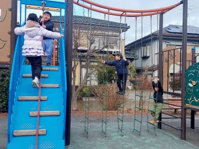 寒い日が続いていますが、公園でも遊びが活発です!