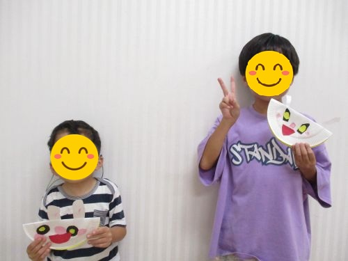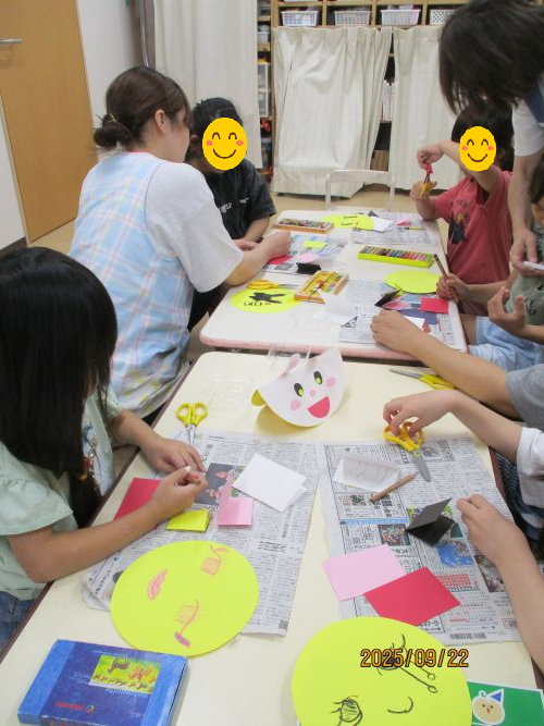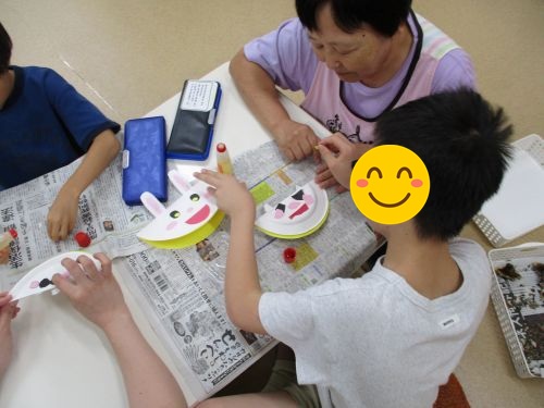 放デイのお兄さんお姉さんは、うさぎさんの顔をチョキチョキ切って、貼って