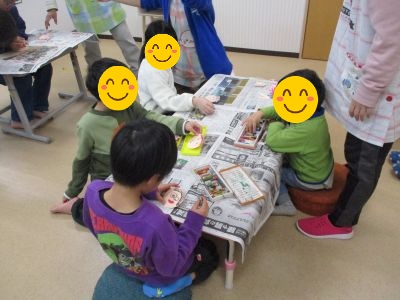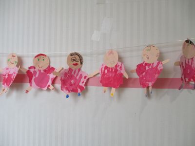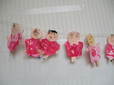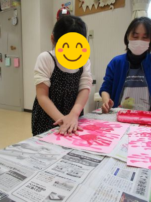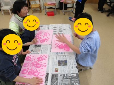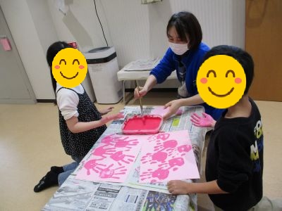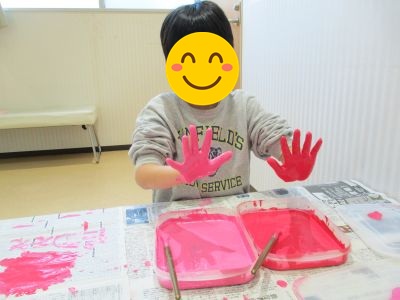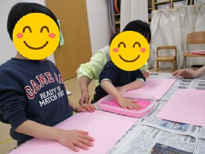まずはさくら子ちゃんの洋服の模様を手形で作ります