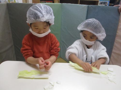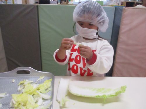 今日は、ゆかりあえに使う白菜を観察して、ちぎりました。