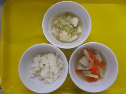 ・鶏ひき肉と野菜の煮物(鶏ひき肉、白菜、たまねぎ、とうふ)