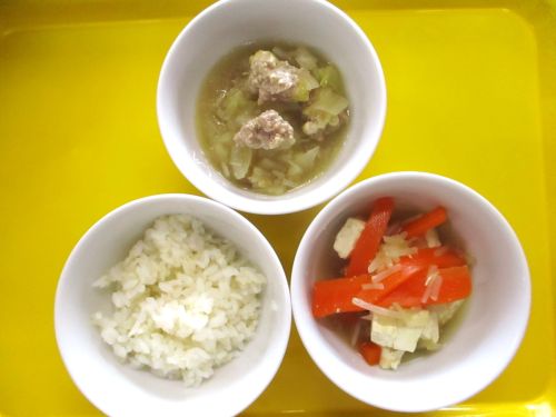 ・みそ汁(木綿豆腐、わかめ、もやし入り)