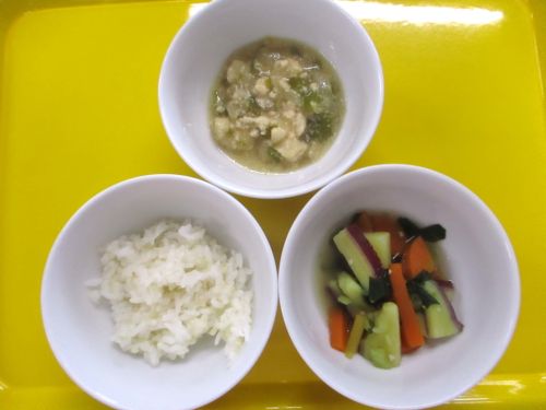 ・玉ねぎと鶏ひき肉のとろみ煮(鶏ひき肉、玉ねぎ、ピーマン)