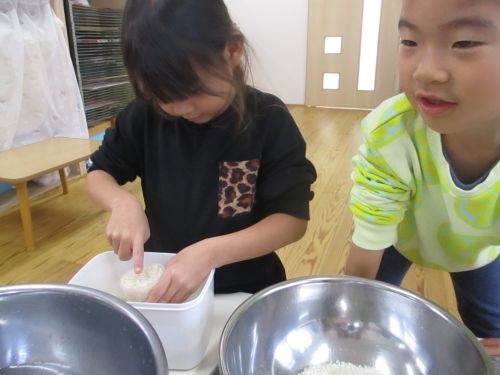 お米研ぎを頑張ったので、自分たちでおにぎりを握りたい‼とリクエストがありました♡