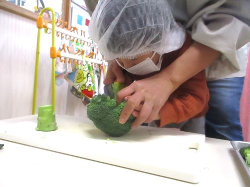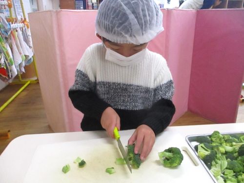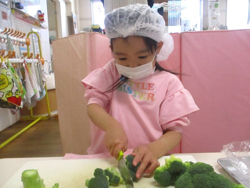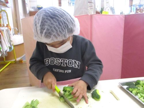 ・包丁を使っての調理体験はこどもたちの楽しみの一つです。少しづつ上手になってきています。