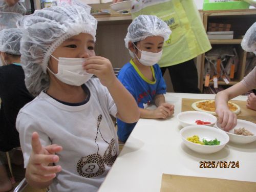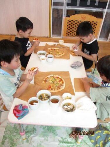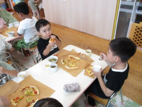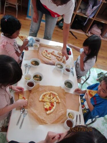 制作ピザの後は、美味しいピザ🍕を食べました!